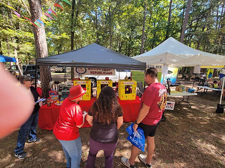Marion County Republicans enjoying themselves at the Dam Jam at the Roy Danuser Park in Bull Shoals, Arkansas. Come on down and play the Human Slot Machine, enjoy the music, car show, and lots of vendors. Look for the Human Slot Machine the 79th Annual Turkey Trot Festival.